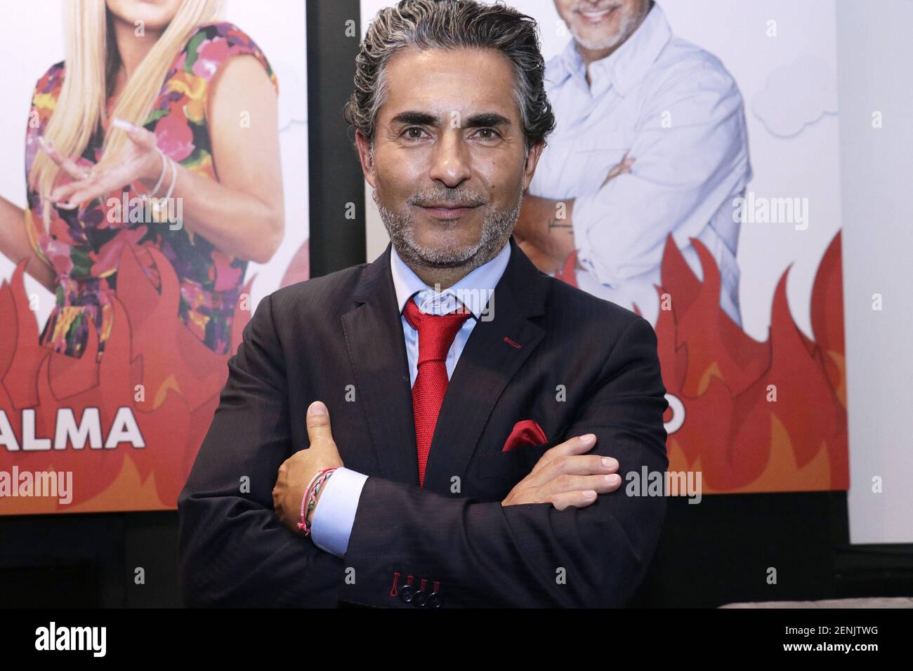 Raul Araiza And Veronica Jaspeado Poses For Photos During A Press Conference To Promote Alma De Angel Tv Series At Televisa San Angel On August 27 2019 In Mexico City
